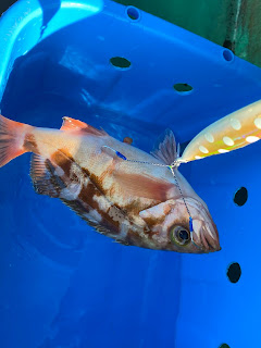 オニカサゴ、ウッカリカサゴ、イナワラ、トラフグ、ブリ(血抜き後9.0kg)。